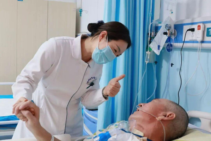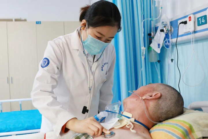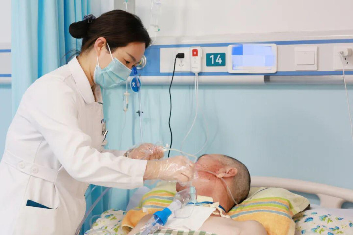呼吸治疗是关键。每天,副主任医师曹智洁会进行数次肺部听诊、排痰、呼吸肌力训练。“我们的目标不仅是维持气道通畅,更是要帮助他逐步恢复自主、有力的呼吸功能,为将来封管创造条件。”曹智洁一边指导刘建进行腹式呼吸,一边解释。