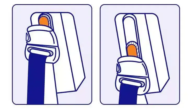 2. 坐在车座上,一手拉出安全带,另一只手握住卡扣处,将卡扣片与卡扣处卡紧,以确保安全带牢牢地拴住身体。