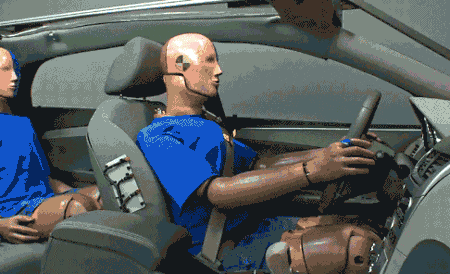 发生撞击时,巨大的惯性力可能超过后排乘坐人体重的20倍,不仅前排座椅和车内把手抵挡不住,人体力量也不足以应对,乘坐人会与挡风玻璃、顶棚、前排座椅等物体发生碰撞,甚至有可能被甩出车外。