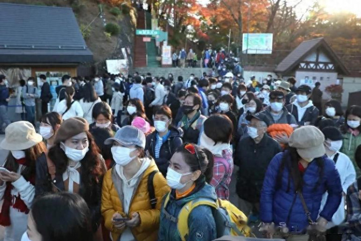 在今年最后一个三连休中,追寻震撼红叶景观的游客蜂拥而至各大景点。路上无一不被人潮淹没,呈现罕见的大混杂景象。