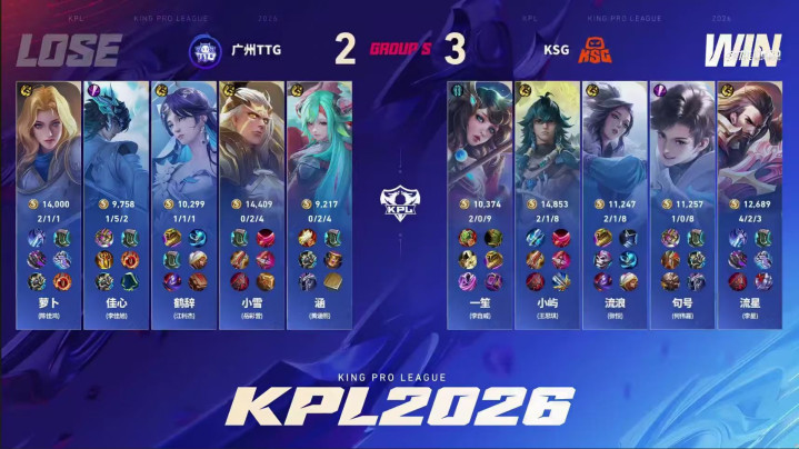 这场比赛,KSG在2比0领先之后,虽然被TTG连追两局扳平比分,但是好在稳住了决胜局,顺利拿下胜利!