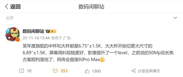 快科技11月14日消息,博主数码闲聊站暗示,华为Mate 80系列原来的Pro+版本会以Pro Max来命名。